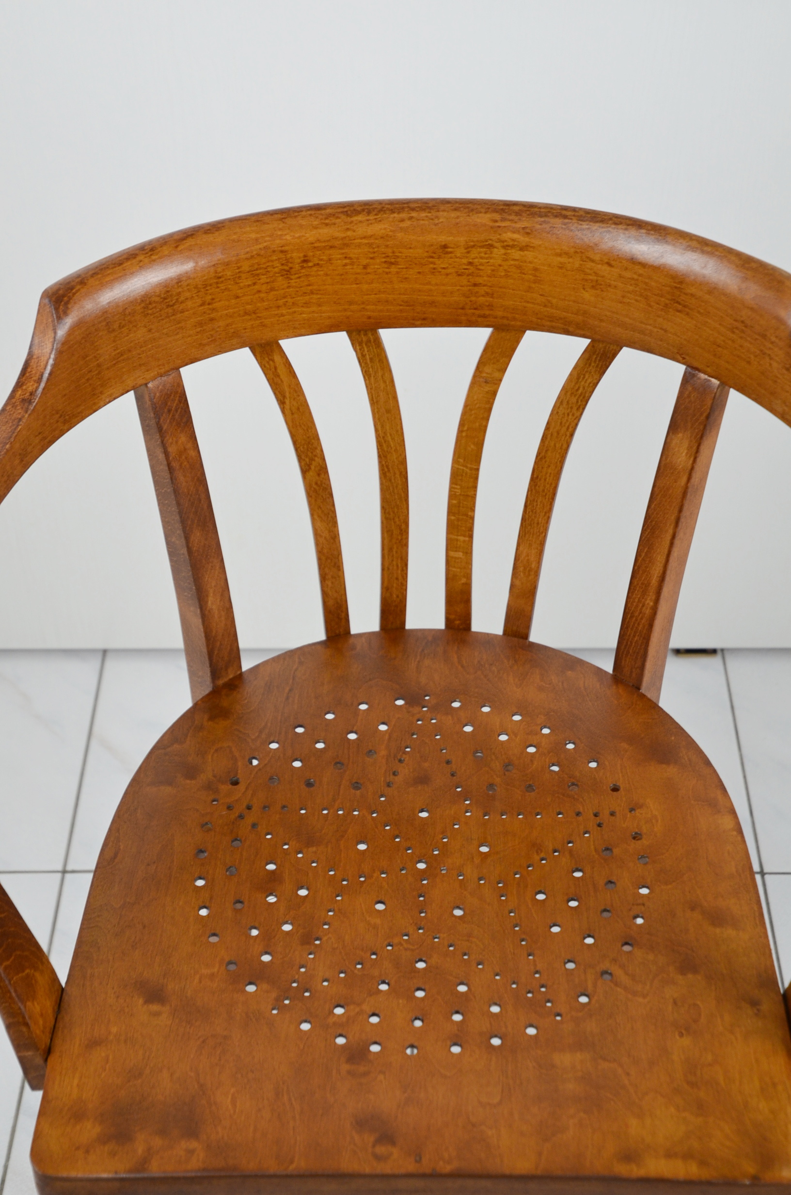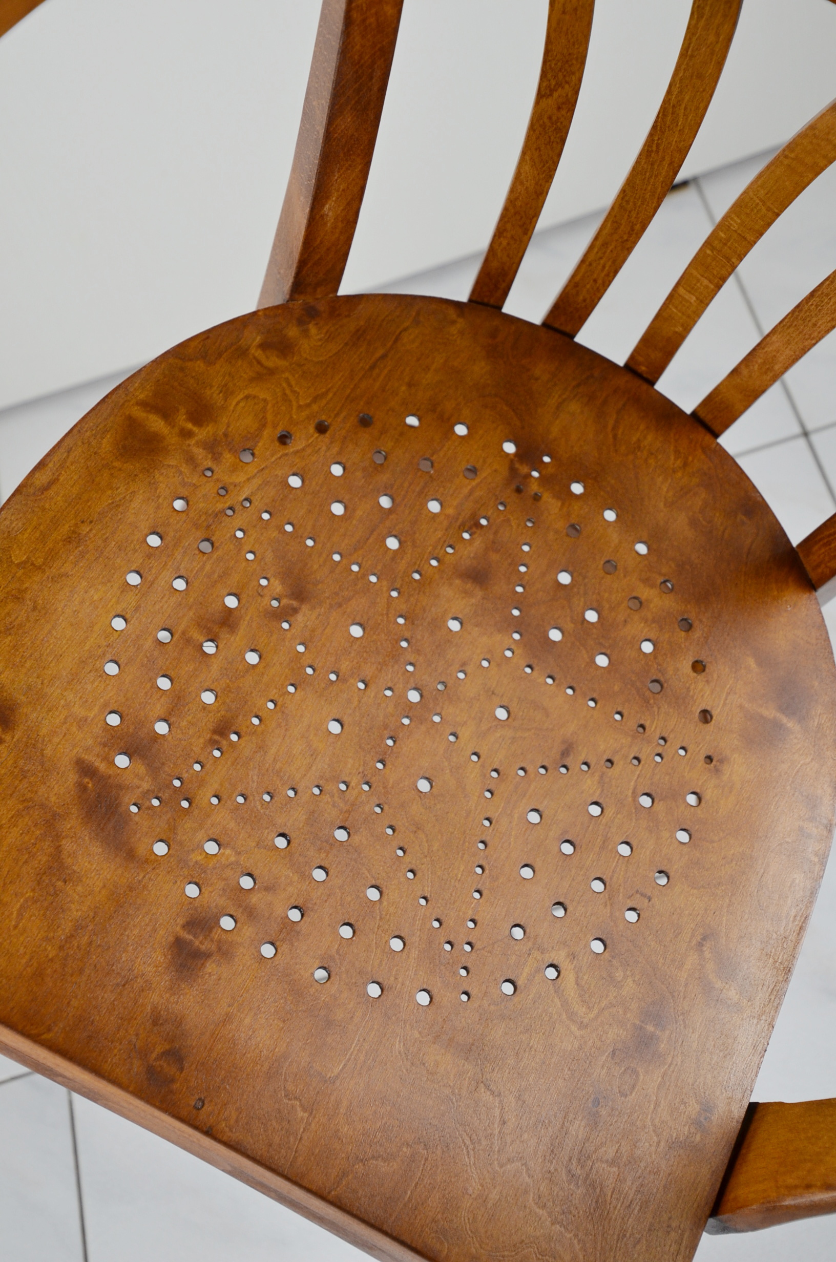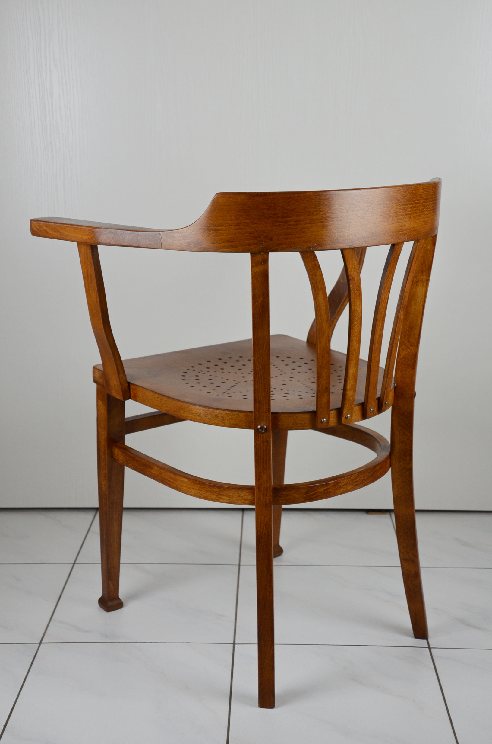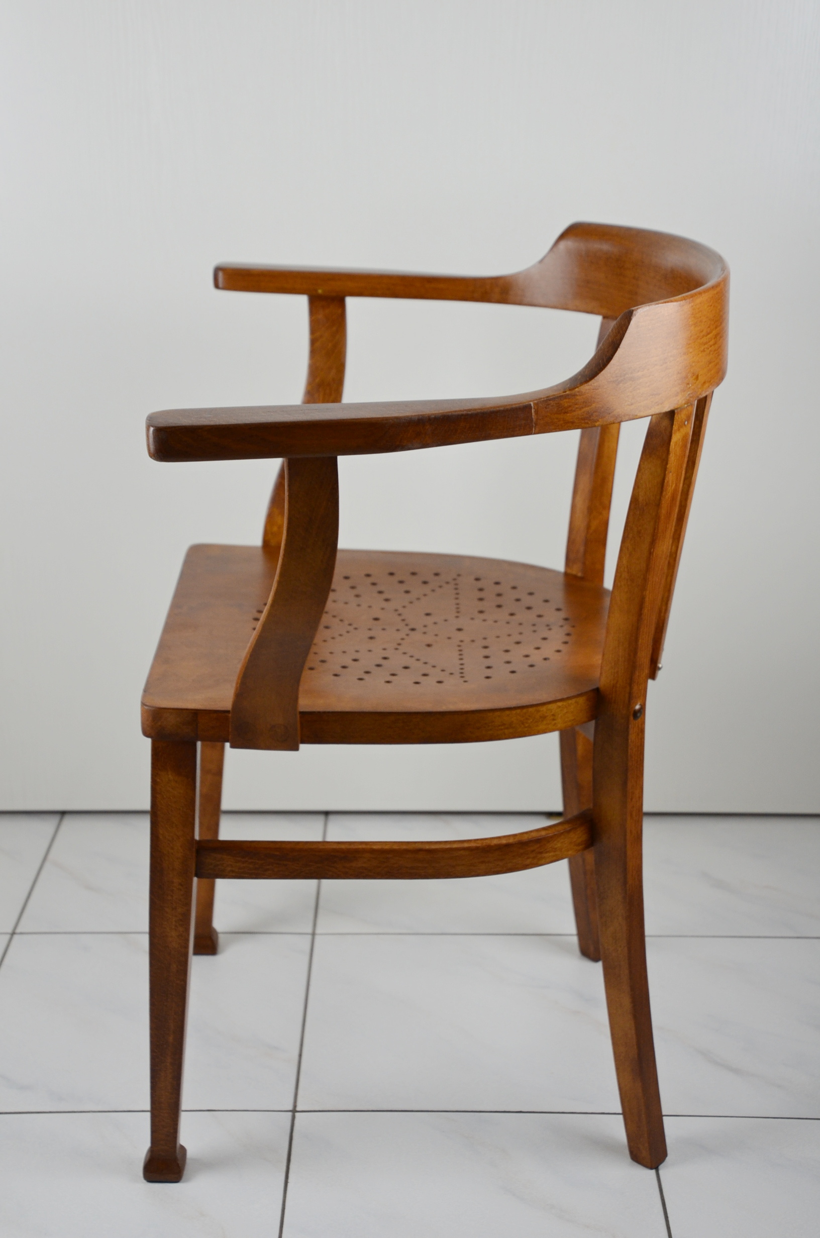 Nádherné polokřeslo značky Thonet po kompletní renovaci se zdobeným sedákem. Hodící se k Vašemu pracovnímu nebo jídelnímu stolu.
